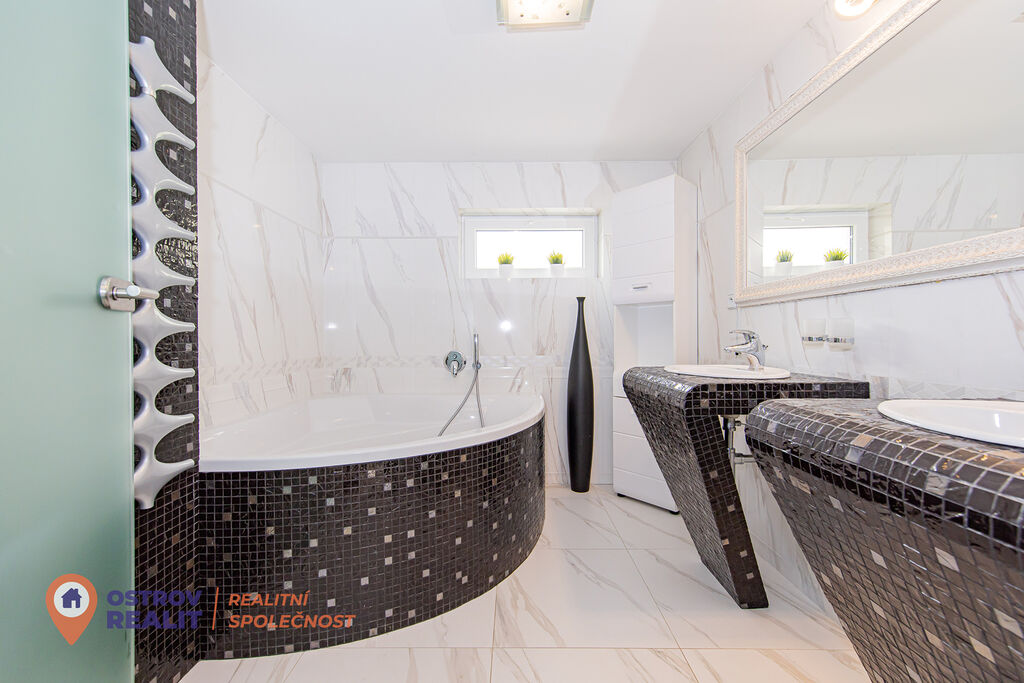 Dispozice: přízemí (4+2) se dvěma kuchyněmi, obývacím pokojem, ložnicí a koupelnou; patro (4+kk) s moderní kuchyní propojenou s obývacím pokojem, třemi pokoji a dvěma koupelnami.