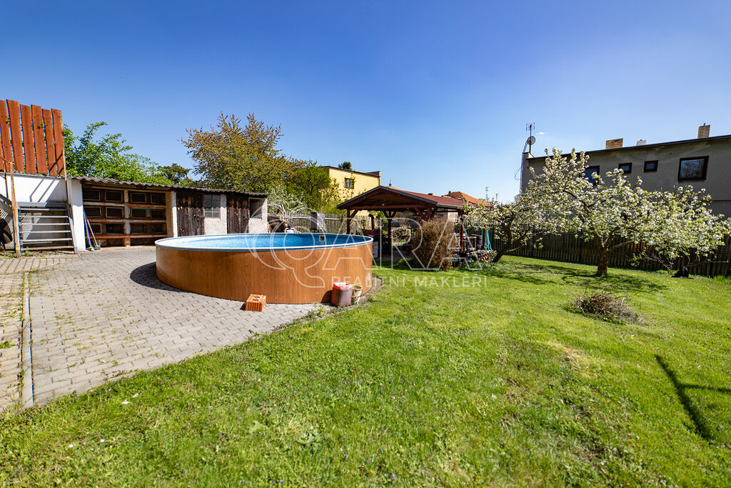 Pozemek je kompletně oplocen. Dům je napojen na veškeré inženýrské sítě.