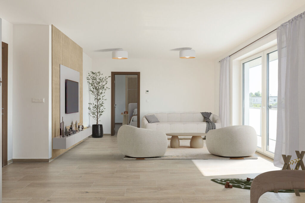 Vnitřní řešení bytových jednotek odpovídá moderním trendům v bydlení. Propojení obývací části s kuchyňskou nabízí větší variabilitu prostor a možnost uplatnit originální řešení. Výsledný otevřený prostor je působivý, vzdušný a jednotliví členové rodiny tak mohou být stále pohromadě.