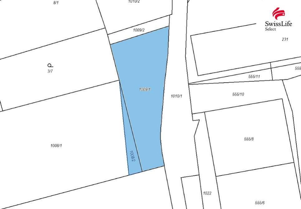 Celková rozloha rovinatého pozemku je 1371m2 a je tvořena dvěma funkčně navazujícími pozemky.