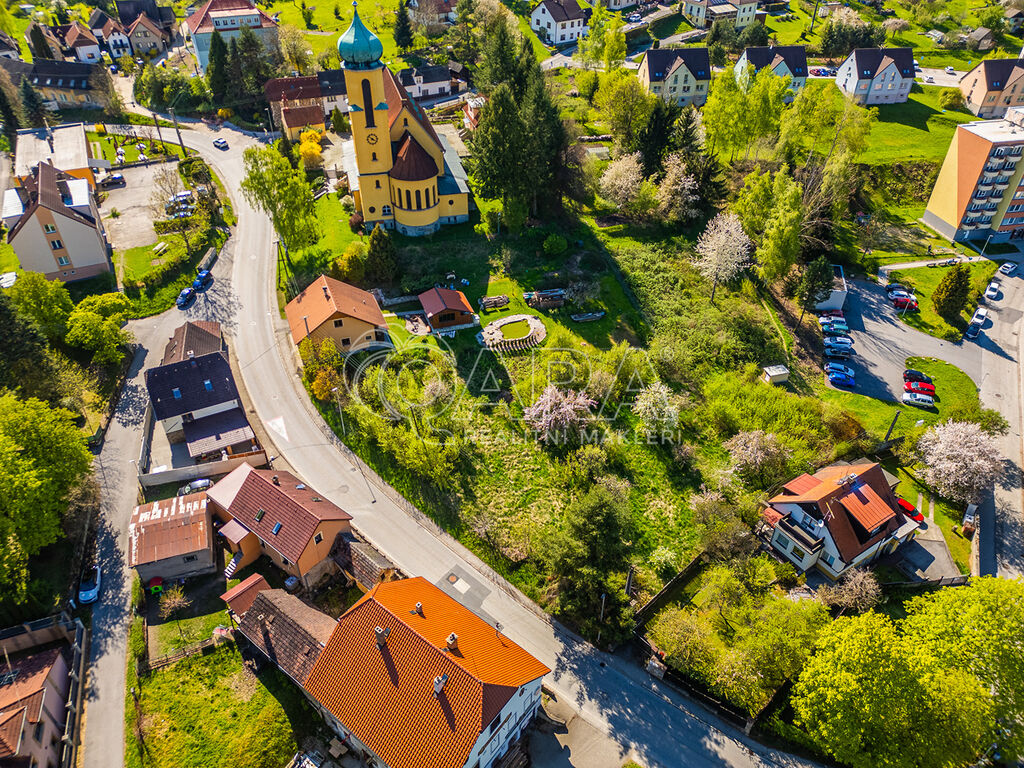 Pozemek je umístěn takřka vedle krásného kostela a přestože se nachází vedle silnice, díky množství zeleně, která ho obklopuje, si budete připadat jako na polosamotě. Terén pozemku je mírně svažitý. Na pozemku se nachází vzrostlá zeleň.