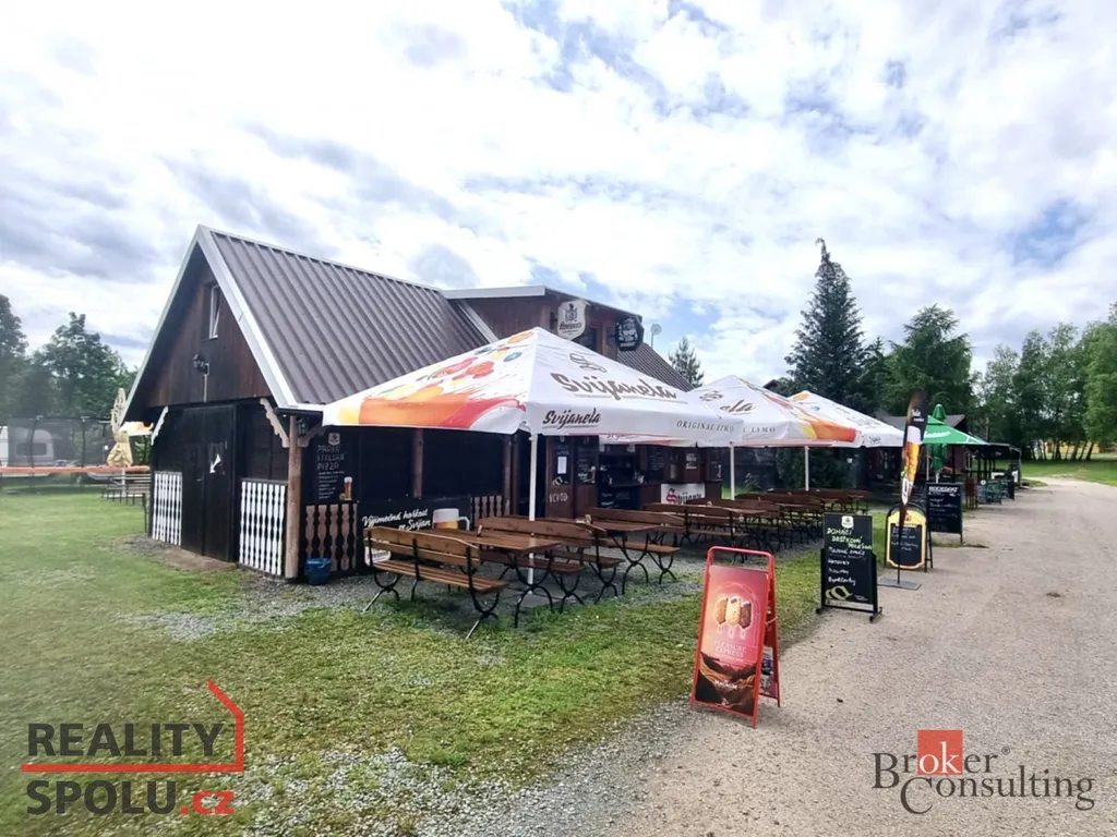 Kiosek je vybavený k okamžitému provozu, tak jak vidíte na fotkách. Nabízí příjemné venkovní posezení jak z přední, tak i ze zadní strany objektu. Velkou výhodou je podkroví, kde se nacházejí dvě obytné místnosti, technická vstupní místnost a sociální zázemí. Tento prostor lze využít jako bydlení pro personál, nebo jako ubytovací kapacitu pro hosty, což může být zajímavé rozšíření nabídky služeb.