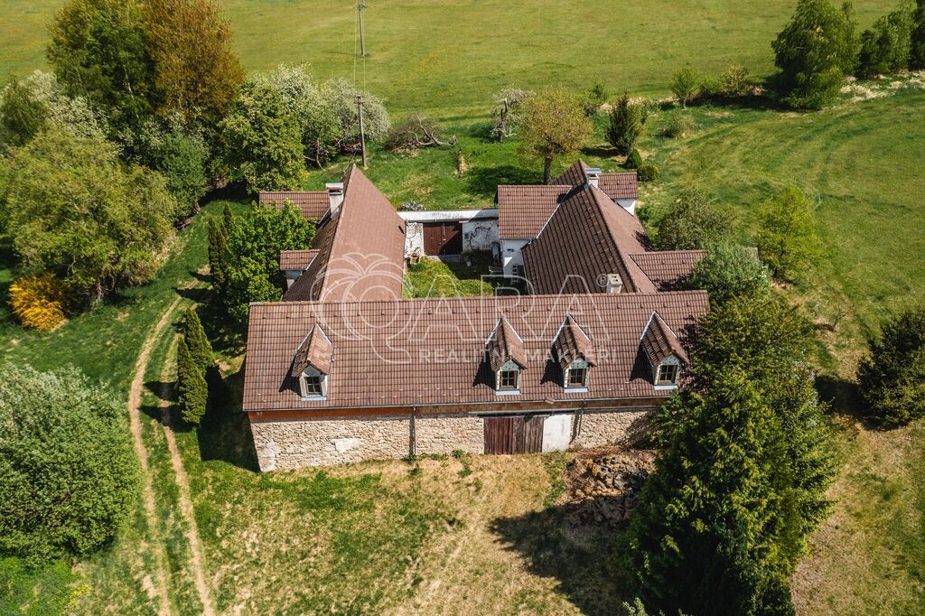 Tento rozlehlý vícegenerační objekt se nachází na pozemku o výměře 4285 m² a nabízí nerušené výhledy na okolní louky a lesy. Součástí nemovitosti je stáj pro tři koně, kterou lze flexibilně využít i jako halu pro podnikání, dále dvougaráž a dílna. Před 15 - 20 lety prošel statek částečnou rekonstrukcí, která zahrnovala zvýšení krovu, novou střechu, částečně rozvody vody a elektřiny, rekonstrukci stáje a podkrovního bytu. Původní záměr majitele počítal s vybudováním vlastního bydlení v menší části a pronájmem pokojů s restaurací ve zbývající části.