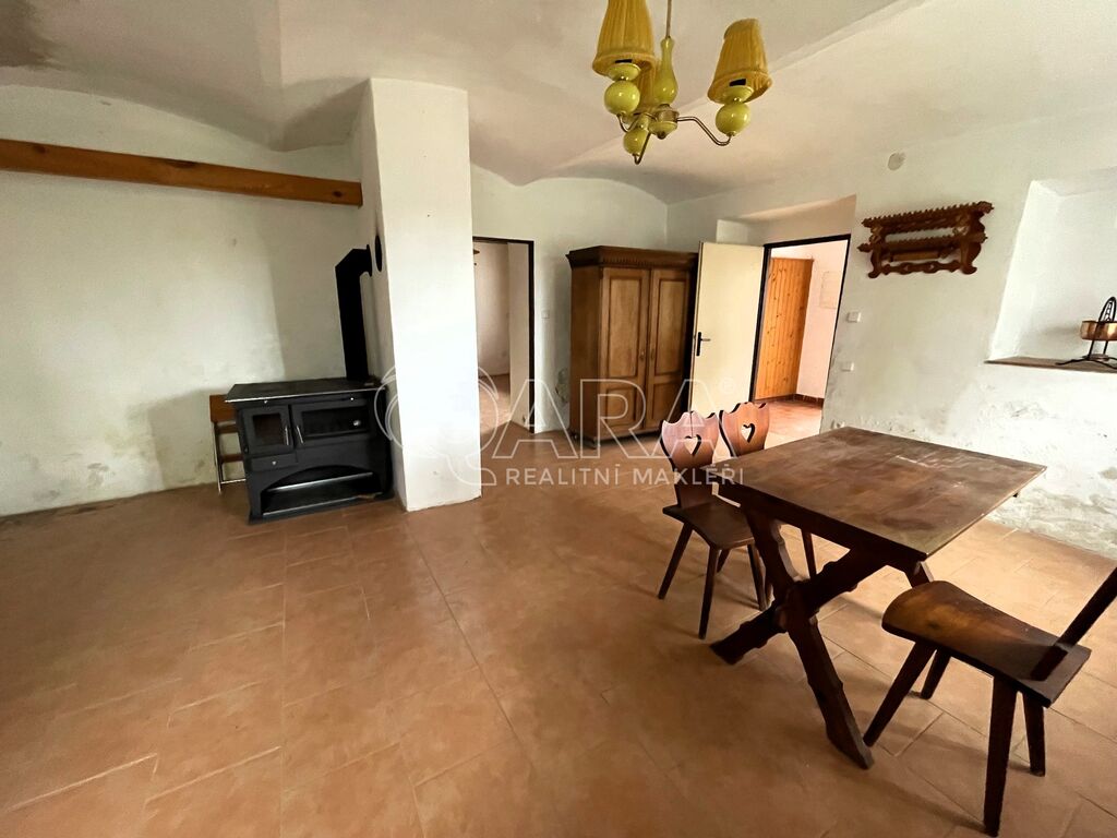 V současné době je možné po menší úpravě obývat dva samostatné byty se společným vstupem (2+kk v přízemí a 1+kk v podkroví, obytná plocha momentálně celkem cca 115m2) s lokálním vytápěním na pevná paliva. Dále je k dispozici dílna, dvougaráž a stáj. Zbylá část objektu je v různém stupni rozestavěnosti nebo připravena k rekonstrukci dle vašich představ. Atmosféru dokreslují kachlová kamna ve dvou místnostech. Podlahová plocha celkem činí 590 m2.