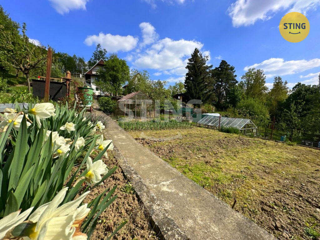 Pozemek má výměru 411 m2 a je upraven do kaskád se záhony – ideální pro pěstování i odpočinek. Zastavěná plocha chaty činí 26 m2. Přístup je bezproblémový – k chatě se pohodlně dostanete autem, žádné dlouhé nošení věcí přes les.