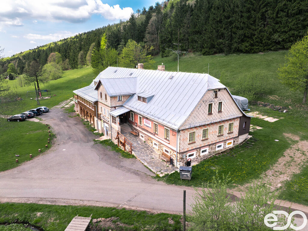 Nabízím k prodeji horskou chatu nacházející na okraji lesa v Olešnici v Orlických horách, nedaleko Deštného. Tento dvoupodlažní objekt ve stavu před kompletní rekonstrukci se zastavěnou plochu 514 m² a užitnou plochou 1400m2, představuje skvělé zázemí pro podnikání nejen v gastronomii. Celkový pozemek má rozlohu přibližně 31.000 m². Nemovitost je vybavena vším potřebným k provozu. Restaurace má kapacitu pro cca 100 hostů a je doplněna o více než 20 míst na venkovní terase s krásným výhledem na okolní krajinu. V rámci objektu se nachází plně vybavená kuchyně splňující veškeré standardy pro profesionální provoz. Kapacita ubytovacích lůžek sčítá cca 65 míst. V prvním patře se nachází 15 pokojů, v přízemí 2 apartmány s vlastním sociálním zařízením. Přívod vody je zajištěn ze studně a odpad je řešen čističkou odpadních vod pro celý objekt. Areál je obklopen lesy a krásnou horskou krajinou, která ji přidává na atraktivitě místa. Okolí nabízí v létě možnosti pro turistiku, výlety na kole do okolí což zvyšuje návštěvnost restaurace a v zimě ve vzdálenosti 1km můžete navštívit lyžařský areál. Doprava k místu je bezproblémová. V současné době je objekt pronajímán velmi zodpovědným nájemníkem. Toto místo představuje nejen ideální prostor pro provoz restaurace, ale i pro vybudování nových ubytovacích kapacit, což může přitáhnout rekreanty hledající klid a pohodu v přírodě. Máme také vyhotovenou projektovou dokumentaci pro výstavbu nových apartmánů, kterou vám předložíme na prohlídce nemovitosti.
