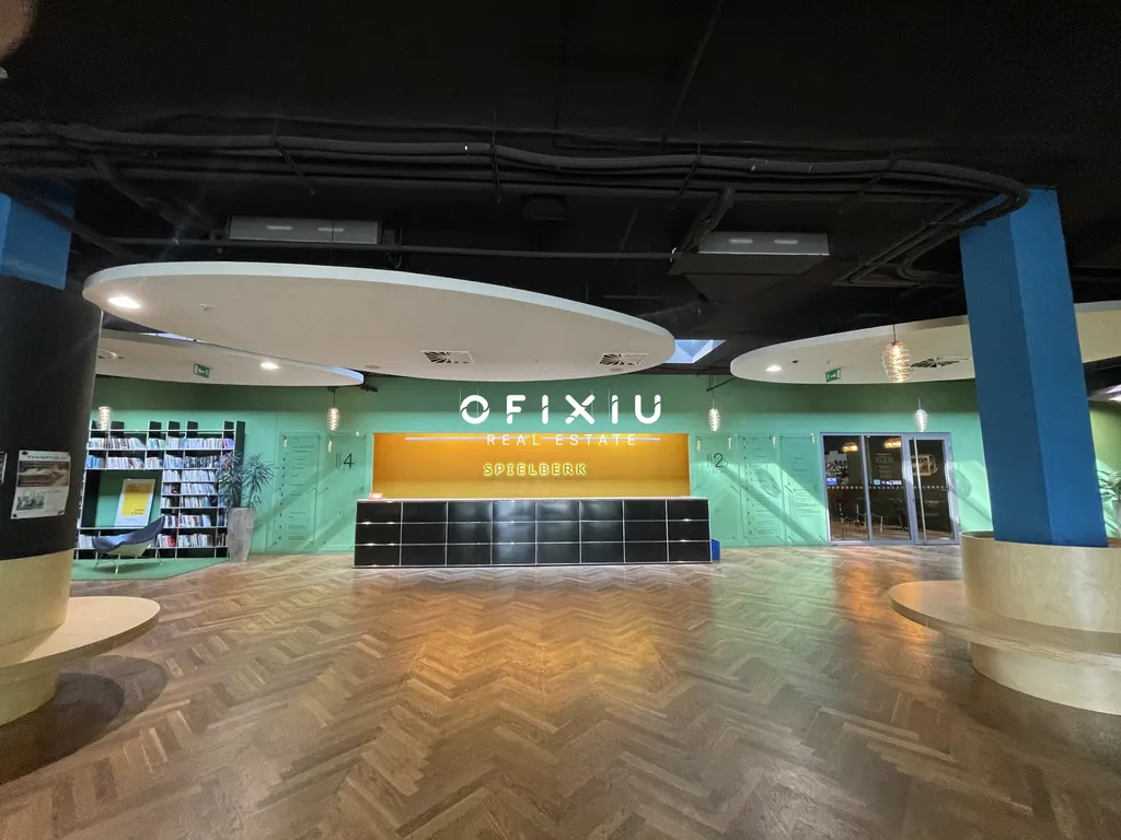 Kanceláře se nachází v 5. patře a dle klientových preferencí je možno vybrat z několika variant samostatných místností, které jsou pak vybaveny dle jeho individuálních potřeb. Zároveň jsou k dispozici sdílené prostory nabízející možnosti navazování nových kontaktů, práce a schůzek v zasedacích místnostech, a také využití služeb jako kávovar či kopírka.