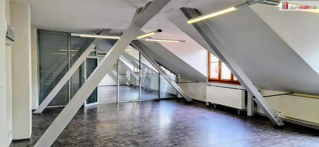 Dumrealit.cz Vám zprostředkuje pronájem kancelářských prostor o rozloze 120 m² se skladem 17,6 m² a venkovní terasou, které se nacházejí ve 3. patře administrativní budovy, kde se propojuje industriální styl s moderními prvky.