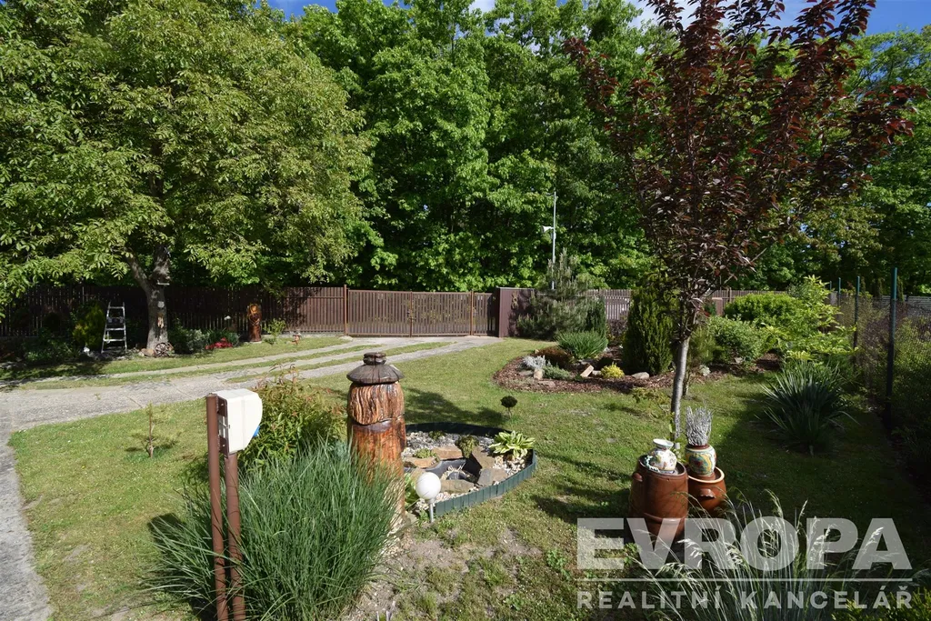 Zahrada o výměře 1.073 m2 poskytuje nejen dostatečný prostor pro relaxaci a zasloužené chvíle odpočinku, ale nabízí také možnost vlastní seberealizace při vytváření a modelování zahrady a okrasných záhonů. Na pozemku je studna. Pro zahradní techniku, nářadí a nábytek byl postaven prostorný plechový sklad se dvěma vraty. Ve skladu je zavedena elektřina. K západní straně domu je přistavěna zastřešená pergola.