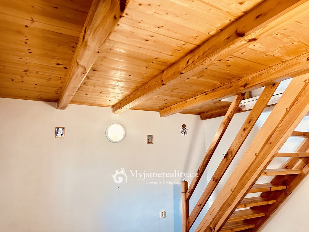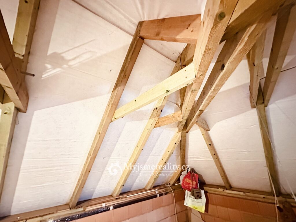 . V podkroví další ložnice a v současnosti více než 42 m2 nevyužitého prostoru,
