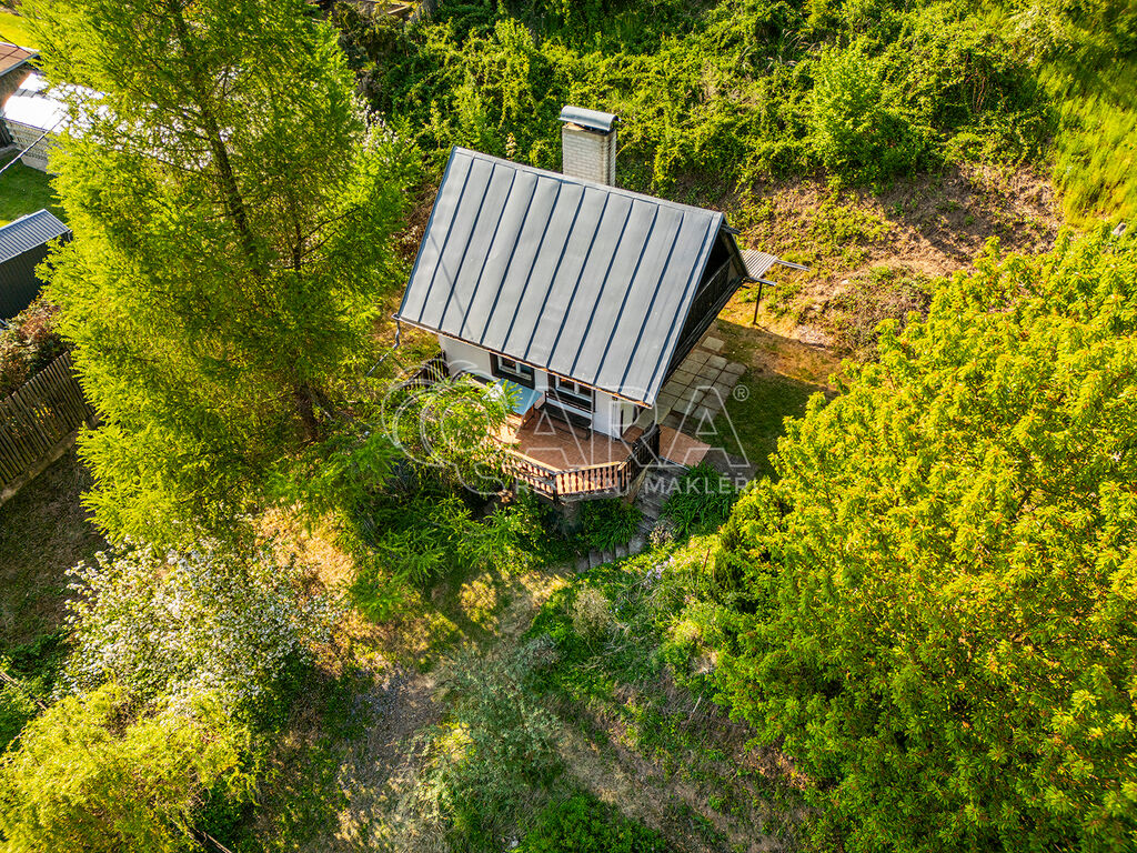 REZERVOVÁNO! Ve výhradním zastoupení majitele nabízíme k prodeji chatu s terasou a sklepem nedaleko Prahy, v krásné lokalitě obce Černolice, v oblasti Za Homolí. Nemovitost je vhodná k rekreaci nebo po případné úpravě i k celoročnímu užívání. Dle aktuálního územního plánu je pozemek určen k výstavbě domu k rodinné rekreaci se zastavitelností pozemku 20 %. Do chaty je přivedena elektřina, na pozemku se nachází vrtaná studna a odpad řešen jímkou. Chata o dvou podlažích má dispozici 2+1 a je kompletně podsklepena. První nadzemní podlaží chaty tvoří pokoj (15 m2), kuchyně (4,5 m2) a toaleta se sprchovým koutem (cca 2 m2). Ve druhém nadzemním podlaží se nachází prostorný pokoj (cca 14 m2) se vstupem na balkon. Z terasy (13,5 m2) se naskýtají volné výhledy do okolí. Vytápění chaty zajišťují kamna na tuhá paliva. Na střeše položena plechová střešní krytina.