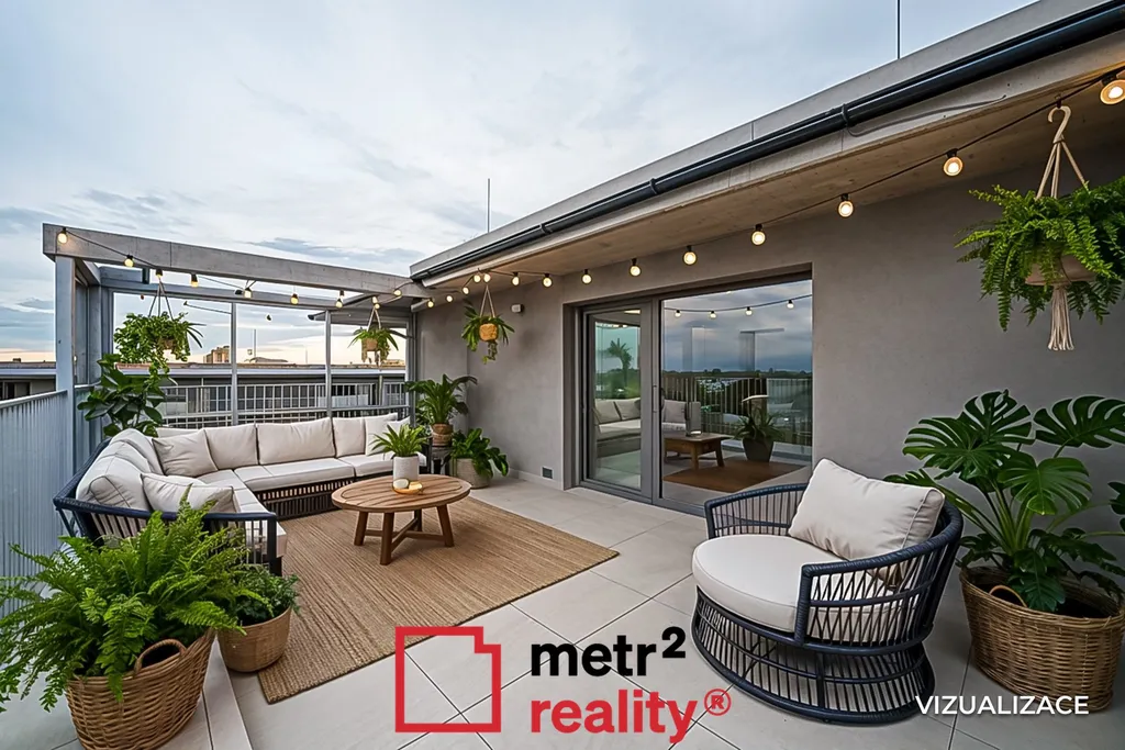 Pronájem bytu 3+kk s prostorným balkonem a terasou v moderní novostavbě cihlového bytového domu ,,B" v Olomouci – Holici na ulici U Solných mlýnů. Byt o výměře 59 m2 + balkón a terasa se nachází v 5.NP domu ,,B" s výtahem a je orientován na západní stranu. Bytovou jednotku tvoří předsíň (s možností umístění šatní skříně), obývací pokoj s kuchyňským koutem, dva samostatné pokoje, balkon o výměře 21,78 m2, terasa o výměře 27,92 (na které je vstup ze všech pokojů) a dále koupelna se sprchovým koutem, topným elektrickým žebříkem, toaletou, přípojkou na pračku a možností umístění sušičky. Součástí kuchyňské linky je sklokeramická varná deska, přípojka na myčku, el. trouba a digestoř. Okna jsou osazena trojskly a předokenními žaluziemi na elektrické ovládání. Podlahy v pokojích a v předsíni jsou vinylové, v koupelně dlažba. V celém bytě je podlahové topení, které v letních měsících plní i funkci chlazení. Nájemník má možnost si sám regulovat teplotu v bytě prostřednictvím vlastního termostatu. Vytápění i chlazení bytů zajišťují tepelná čerpadla umístěna v 1. NP domu. Byt je vybaven rekuperací, která slouží k řízené výměně vzduchu ve všech místnostech v bytě. Připojení k vysokorychlostnímu internetu je zajištěno společností ONYX engineering, spol. s.r.o. a nájemník si v případě zájmu hradí sám. Možnost připojení na televizní a rozhlasový signál je pro nájemce zdarma. K bytu náleží samostatná komora v 5.NP domu o výměře 4,36 m2. Možnost pronájmu parkovacího stání v 1. NP domu, možnost nabíjení elektromobilu přímo na parkovacím stání nájemníka. Cena je uvedena bez záloh na energie a služby v celkové výši 5.200 Kč / měsíc. Zálohy na energie a služby budou majitelem pravidelně vyúčtovány dle skutečné spotřeby. V blízkém okolí je kompletní občanská vybavenost městské části Holicek MHD - 5 min. pěšky, k autobusovému nádraží 10 min. pěšky, vlakové nádraží do 5 min. autem, nákupní centra Šantovka do 8 minut autem, nákupní centrum Olympie do 5 minut autem, Lidl do 5 min. autem, Hornbach 3 min. autem, Baumax 5 min. autem centrum města - 12 min. autem. dopravnímu uzlu s napojením na dálnici. Energetická náročnost budovy třída B - velmi úsporný. Byt je k dispozici ihned.