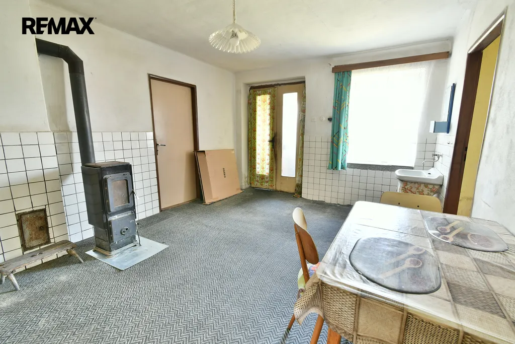 Společnost RE/MAX Future Vám nabízí ve výhradním zastoupení jedinečnou příležitost koupě rodinného domu 161 m2, obytná část 86 m2, 4+kk, ke kompletní rekonstrukci, stojícím na pozemku o celkové výměře 1423 m2 v obci Židovice. Dispozice domu je vstupní předsíň, navazující jídelna s kuchyňským koutem, neprůchozí obývací pokoj, koupelna s wc a za sebou jdoucí dva následující pokoje. Součástí domu je chlév, garáž a dílna.