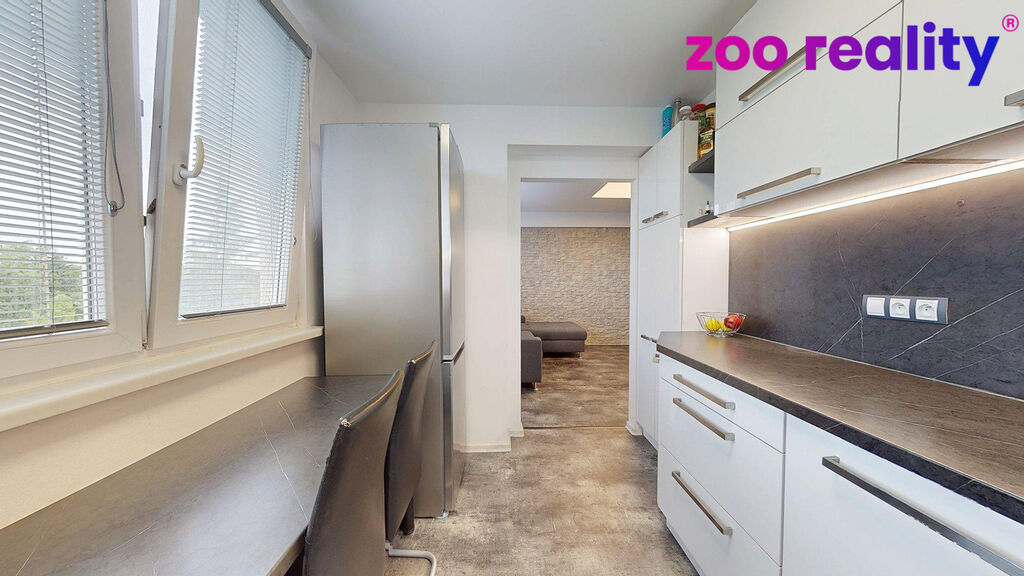 Prodej rekonstruovaného bytu v žádané lokalitě širšího centra Strakonic o dispozici 2+1 a celkové užitné ploše 55 m2, včetně sklepního příslušenství. Byt se nachází ve 4. patře bytového domu s výtahem a je po kompletní zdařilé rekonstrukci - plastová okna s žaluziemi, vystěrkované a vyrovnané podlahy včetně krytin - linoleum s povrchovou imitací matného kamene, zděné jádro, koupelna s prostorným sprchovým koutem a prostorem pro pračku se sušičkou, oddělené sociální zařízení s odkladovým prostorem a úložnou skříňkou nad závěsným wc, obkladové dlažby, vyštukované zdivo celého bytu, dekorační kamenný obklad v obýváku, sádrokartonové podhledy, rozvody elektro v Cu, voda i odpady, odvětrávání prostor bytového jádra, dvojdesková topná tělesa + žebřík v koupelně s termostatickými hlavicemi, dveřní křídla, aj.. Dále jsou v obytných místnostech na stěnách instalované přípojky pro nástěnné umístění televizorů. Na míru řešená kuchyňská linka včetně vestavěných spotřebičů - myčka, trouba, mikrovlnka, digestoř, přidružená spíš v designu kuchyně - kuchyně otevřená do obýváku. Na chodbě je pak na míru dělaný úložný systém skříněk nad věšákem, tak, že opticky ani prostorově nenarušuje tento propojovací vstupní prostor, v pokoji je dále součástí vestavěná skříň. Dispozice bytu je velmi dobře řešena, že je rozdělena vstupní chodbou (4,5 m2) na denní část - kuchyně (8.5 m2) propojená s obývacím prostorem (17,5 m2) a na druhou stranu ložnice/pokoj (18 m2), koupelna (3,5 m2) a WC (1 m2) mají pak vstup samozřejmě z chodby. Veškerá vybavenost a služby jsou dostupné ve městě, viz. odkazy pod inzerátem na inzertních serverech. Orientace oken je do klidné zadní části bloku s možností parkování, s orientací JZ směrem, čili se jedná o slunný byt. Nemovitost si můžete také projít ve virtuální prohlídce s možností zoomování, či měření. Více informací rád sdělím na dotaz, či osobně na prohlídce.