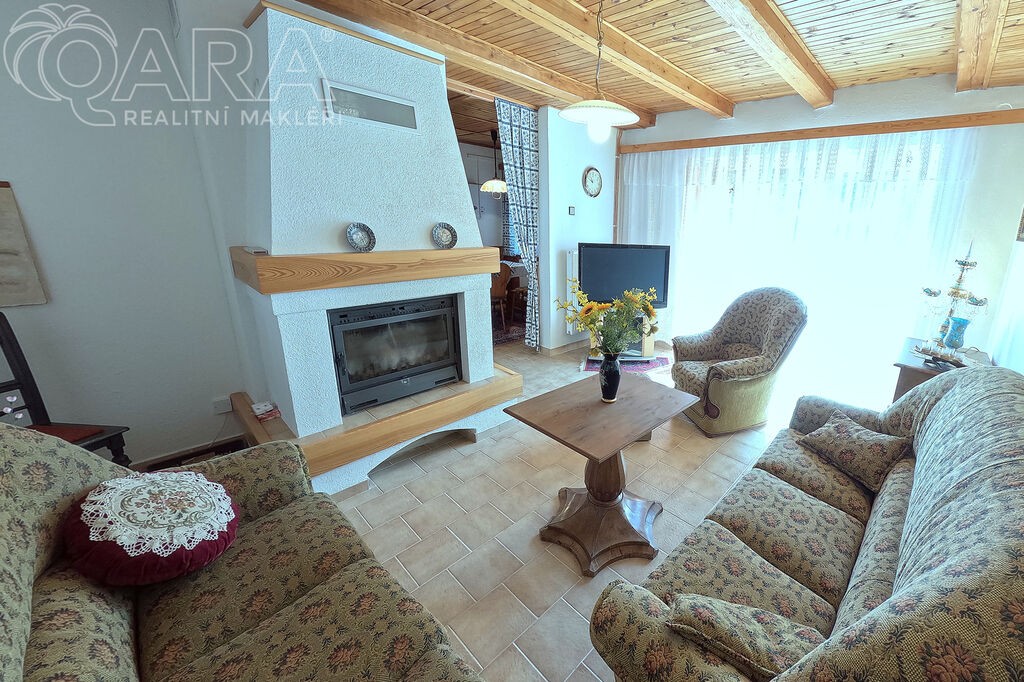 Tento rodinný dům, rekonstruovaný v 90. letech, stojí na pozemku obdélníkového tvaru o velikosti 442 m2. Zahrada je okrasná a k dispozici je také samostatná dřevěná dílna se skladem.