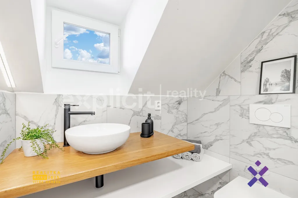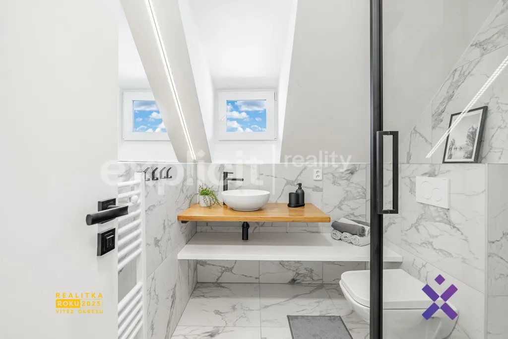 Interiér byl navržen s důrazem na moderní design a kvalitní provedení. Při rekonstrukci byly použity vysoce kvalitní materiály a celý apartmán je ve výborném, udržovaném stavu. Podlaha je vyrobena z masivního dubového dřeva. Dům, ve kterém se apartmán nachází, prošel kompletní rekonstrukcí před dvěma lety, je zateplený a společné prostory jsou ve výborném stavu díky aktivnímu fondu oprav.