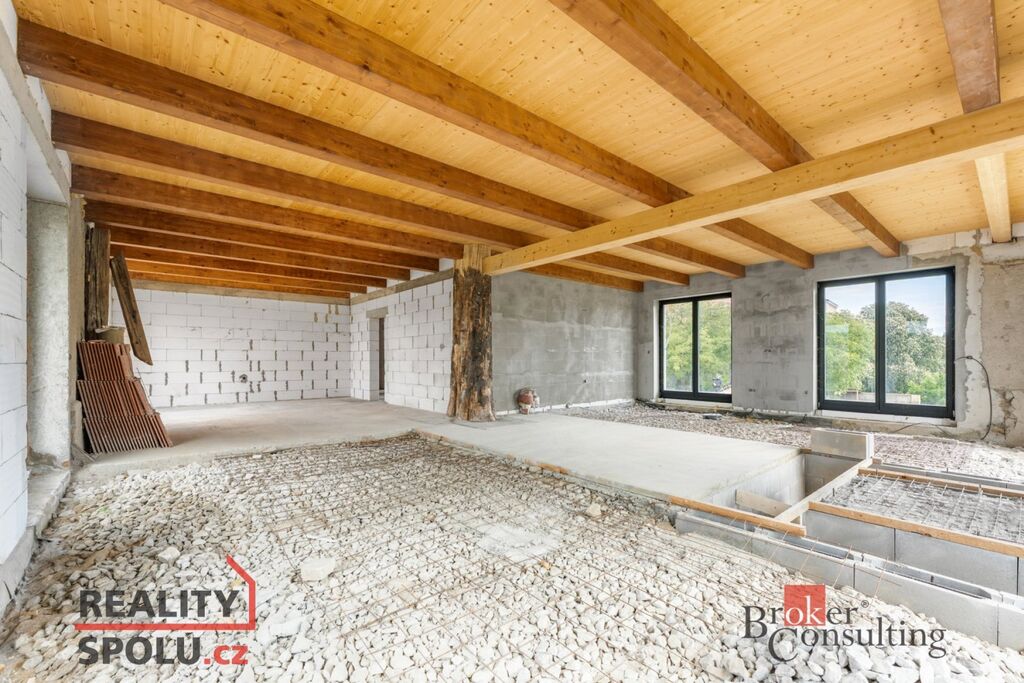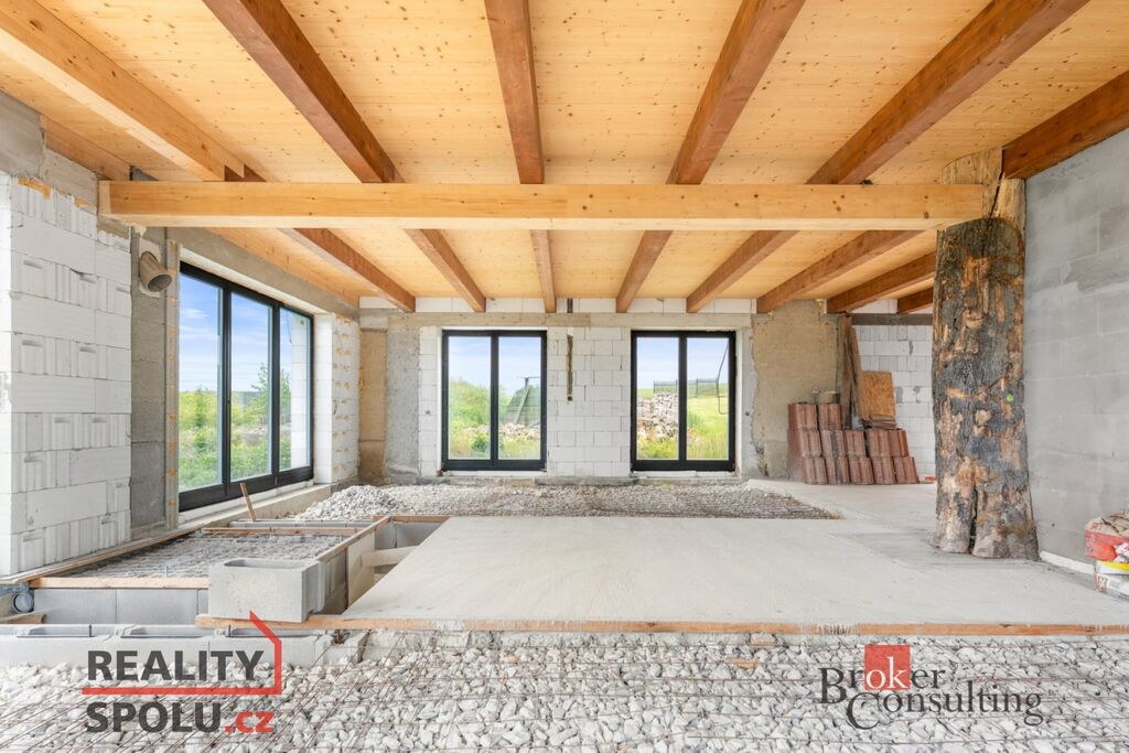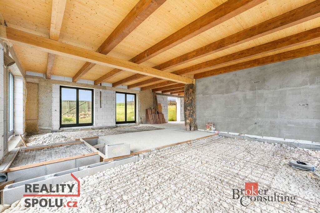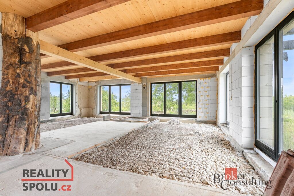 Dům prošel kompletní přestavbou – nezůstal kámen na kameni. Vzniká zcela nová stavba na nové základové desce, vyzděná ze 60cm Ytongu (není třeba zateplovat), se střechou z roku 2020 a osazená velkorysými francouzskými okny s trojskly ve vysokém standardu. Uvnitř je vše připraveno k dokončení podle vlastního vkusu – včetně originálního architektonického prvku v podobě masivního kmene stromu v hlavní obytné části, který vytváří jedinečnou atmosféru.
