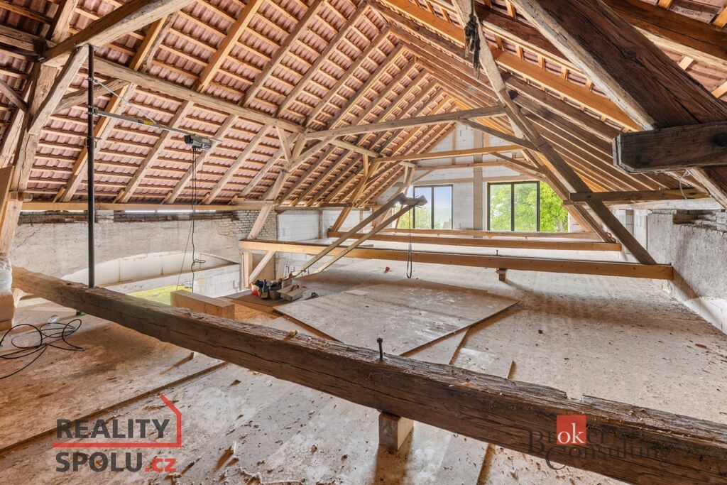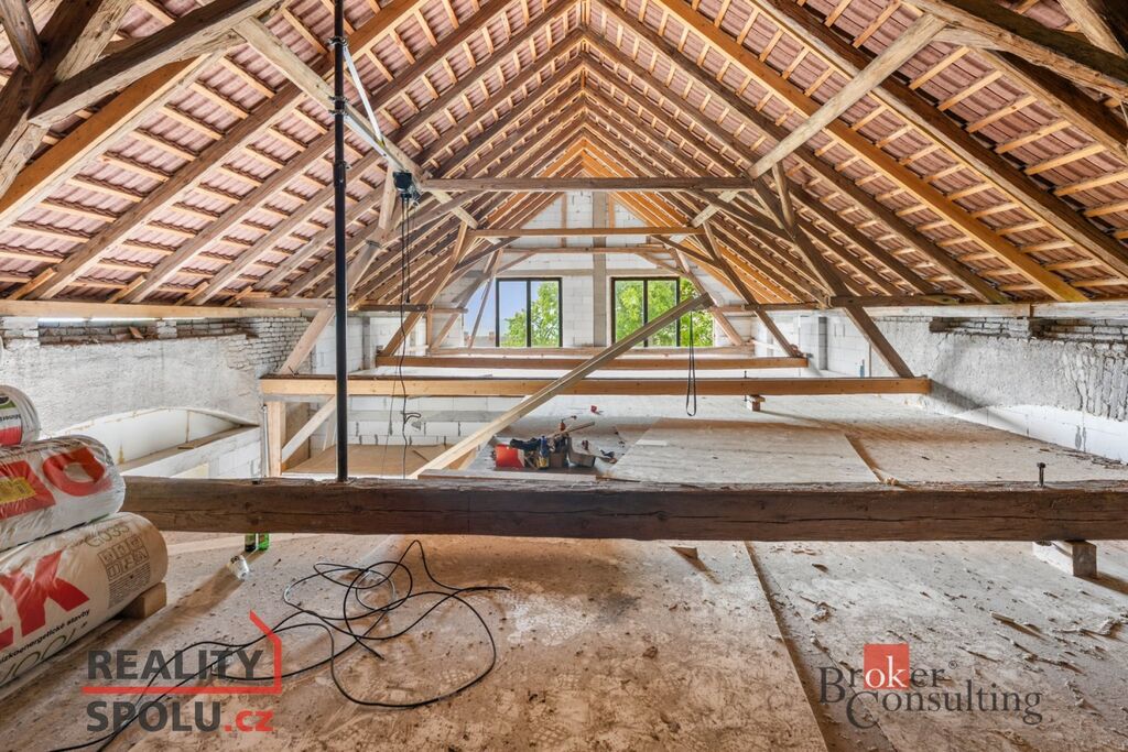 Součástí prodeje je také stavební materiál – biodesky v hodnotě téměř jednoho milionu korun a okna pro horní patro. Po dostavbě nabídne dům užitnou plochu 384 m² a dispozici 11+kk, což umožňuje jak komfortní rodinné bydlení, tak například propojení s ateliérem, pracovnou nebo vícegeneračním uspořádáním. Hlavní část investice je za vámi – zbývá už jen dotvořit interiér podle svých představ a potřeb.