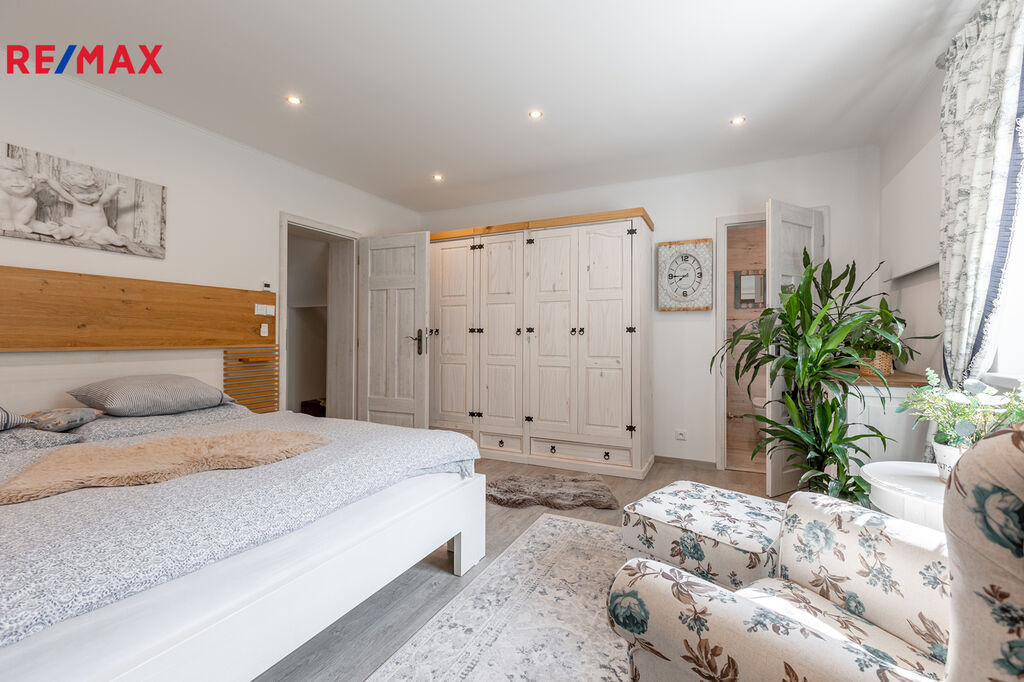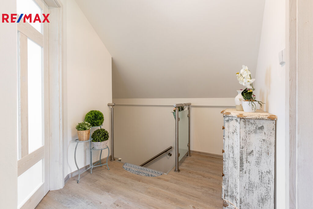Horní patro nabízí další tři samostatné pokoje – ideální pro děti, pracovnu či pokoj pro hosty. Každý má své kouzlo a dostatek soukromí.