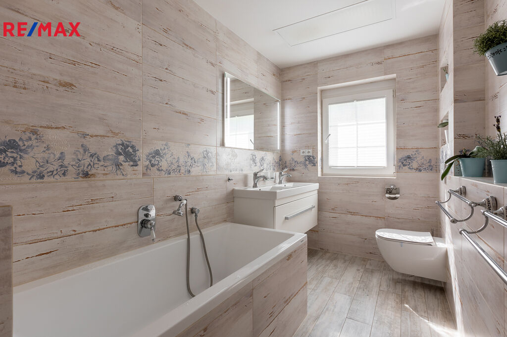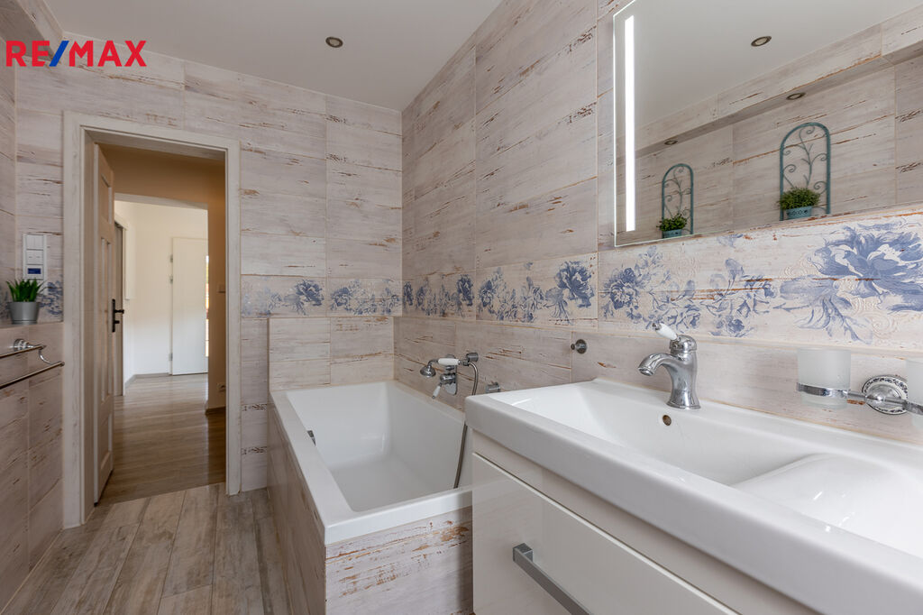 Dům je patrový a promyšleně rozdělený na dvě části. V přízemí se nachází prostorný a světlem zalitý obývací pokoj, propojený s moderní kuchyní vybavenou vestavěnými spotřebiči – radost tu vařit i trávit čas s rodinou. Z obýváku se plynule vstupuje do zimní zahrady, která poskytuje útočiště v každém ročním období. Dále zde najdete ložnici s vlastní šatnou, koupelnu, samostatné WC, útulnou předsíň i praktickou prádelnu.