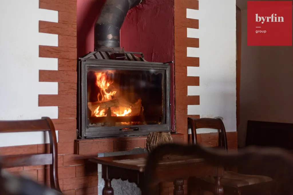 Topení je řešeno krbem v přízemí, elektrickými přímotopy, v prvním patře jsou kamna.