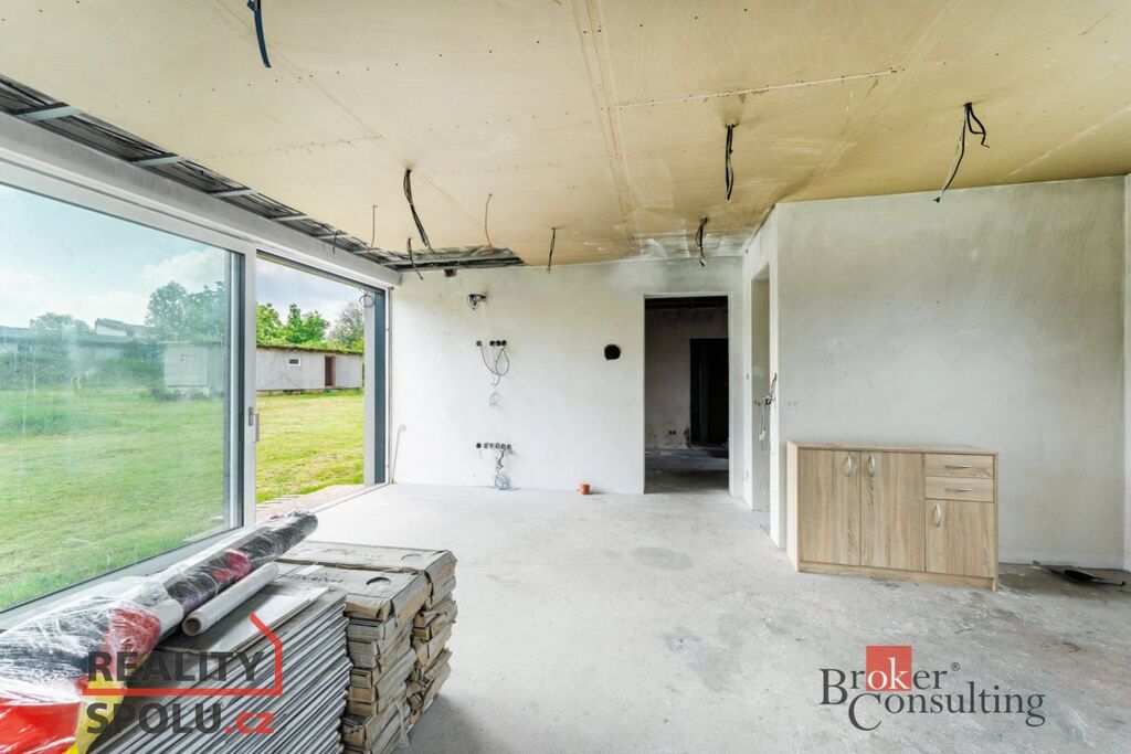 Nabízím Vám k prodeji rodinný dům k dokončení v krásné lokalitě Lány na Důlku v blízkosti Pardubic (10 min autem či dobře dostupnou veřejnosti dopravou) s velkým potenciálem pro realizaci vlastních vizí a představ. Dům je skvěle dispozičně řešen. V přízemí se nachází pokoj, který lze využít například jako pracovnu či pro hosty, dále je zde koupelna se sprchovým koutem a WC a samozřejmě hlavní obytný prostor propojený s kuchyní, s prakticky umístěnou spíží. V horním patře pak najdete další 3 pokoje, prostornou koupelnu a samostatné WC. Z chodby lze vstoupit na půdu, která nabízí mnoho úložného prostoru. Díky střešním oknům je horní patro nádherně prosvětlené a rozzářené slunečním svitem. Topení v celém domě bude zajišťovat již instalované podlahové vytápění. V přízemí je však příprava i pro krbová kamna. Z obýváku se nabízí příjemný vstup přes HS portál přímo na velkorysou zahradu o celkové rozloze 2374 m². Ta má potenciál jak pro využití přímo budoucím majitelem domu, tak jako investiční příležitost, neboť v katastru je oddělena její část o velikosti 963 m², kterou lze samostatně využít např. pro další budoucí výstavbu.
