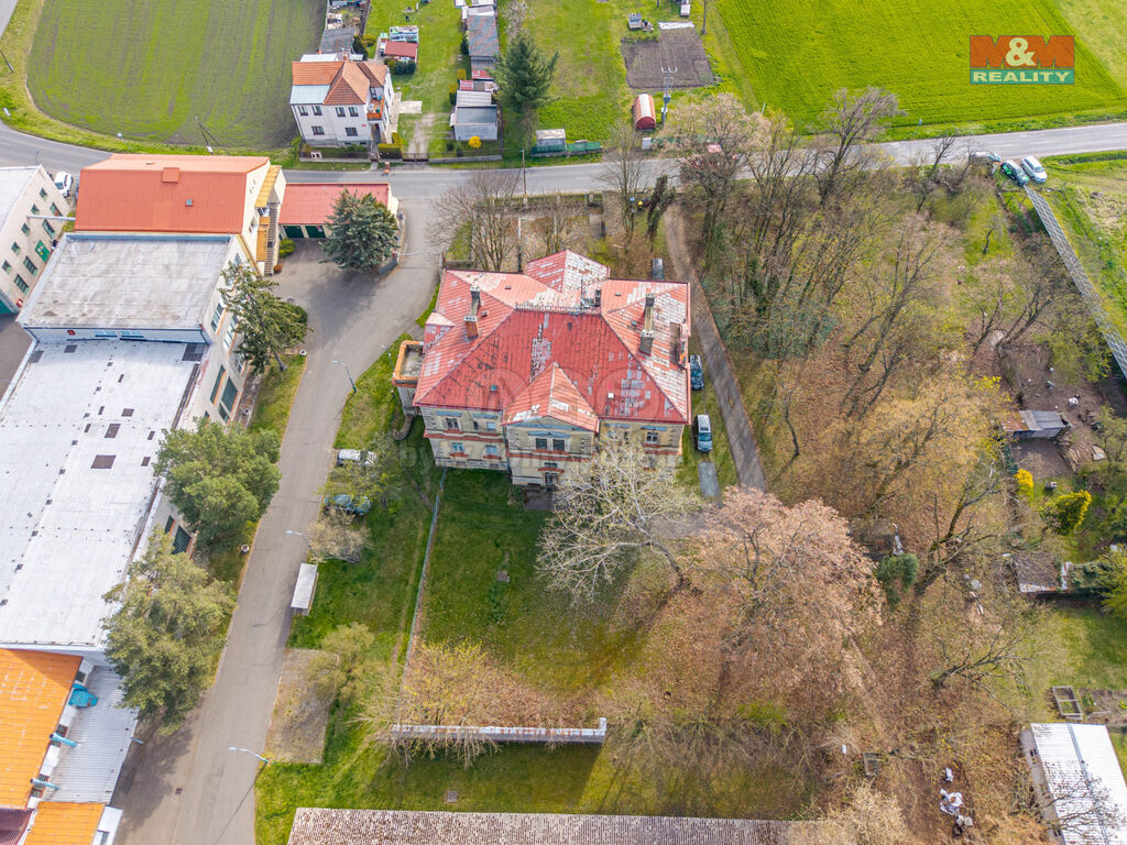 Vytápění je individuálně krbovými nebo akumulačními kamny. Ohřev vody bojlerem. Dům je nyní napojen na vodovod a ČOV přes sousední firmu; budoucí vlastník si však musí zřídit vlastní připojení vody a kanalizace z hlavního řadu přes svůj pozemek. Půdní prostor nabízí vybudování dalších 3 prostorných bytů. Dům má cihelné obvodové zdivo o tloušťce 60 cm a 5 komínů. Celková plocha pozemku bude mít po novém geometrickém zaměření cca 5.000 m². Je možné tak vybudovat zahrádky a parkovací stání.