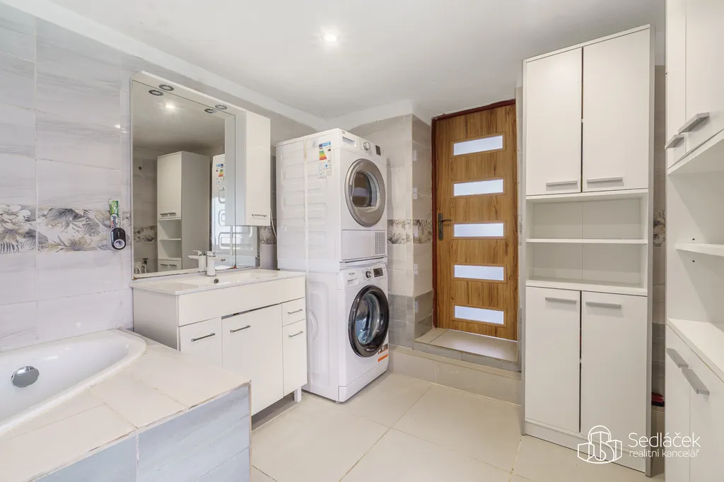 - Ve sklepě je technické zázemí s kotlem na tuhá paliva a bojlerem.