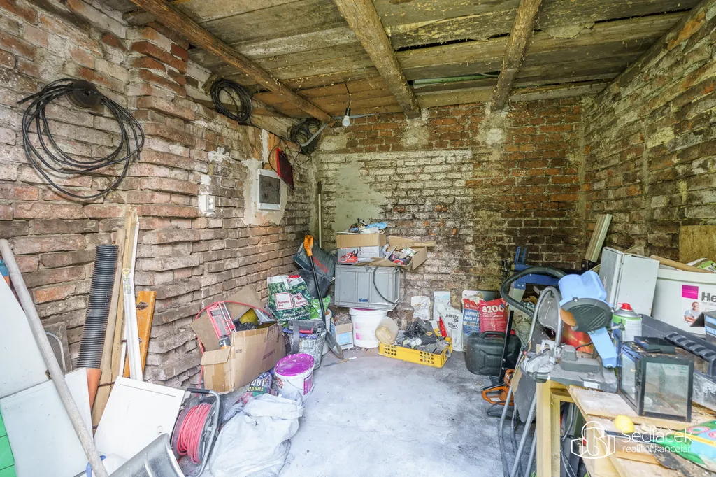 Na oploceném pozemku stojí samostatná garáž, dílna a sklad, takže o úložný prostor nebude nouze.