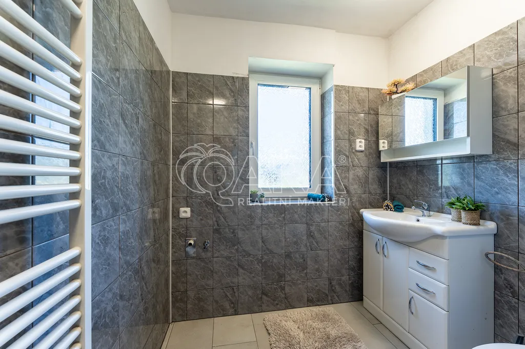 Podkroví (50m²) je připraveno včetně rozvodů a odpadů pro výstavbu dalších dvou pokojů s velkým střešním balkonem a nádherným výhledem na pravou Beskydskou krajinu. Díky tepelnému čerpadlu se nemusíte bát vysokých nákladů. Dům je napojený na veřejný vodovod a eletkřinu.