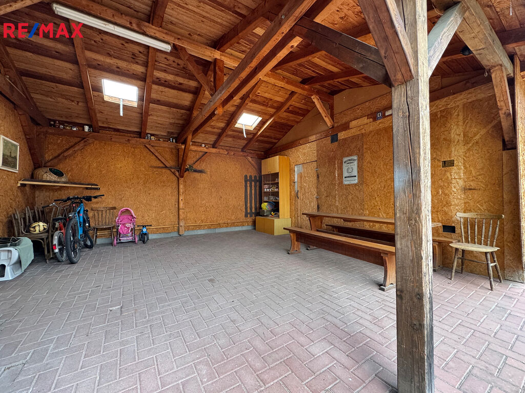 A dále Vám představujeme komerční část, která je přístupná z boku rodinného domu, se skládá ze 2 budov bez č.p. a aktuálně nabízí budova v čelní straně využití pro prodej rychlého občerstvení se zázemím a směrem do zadní části navazuje druhá budova (hala), která je aktuálně využívána pro prodej autodoplňků. Tyto prostory nabízí podlahovou plochu 434 m² s možností nadstavby. Aktuálně přízemní budova z roku 1993 s masivní konstrukcí byla stavebně realizována s vidinou nadstavby dalších 2 pater. V současné době lze dle územního plánu uvažovat o přestavbě/rozšíření stávajících budov. Tyto zděné budovy se všemi dostupnými inženýrskými sítěmi (el., plyn, voda a kanalizace) nabízí mnoho různých využití dle Vašich potřeb.