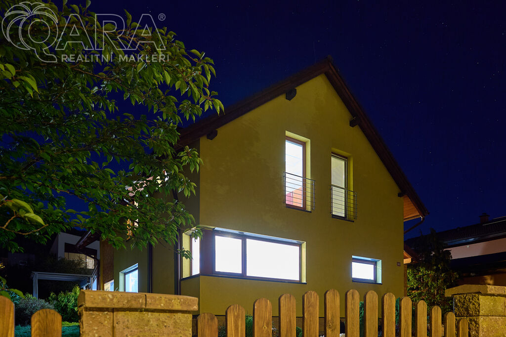 Patrový dům s dispozicí 5+kk, garáží, dvěma koupelnami, šatnou, a především s krytým bazénem, leží na pozemku o velikosti 1060 m2 a nabízí komfort 234 m2 celkové užitné plochy - 215 m2 užitné plochy + 19 m2 garáž.