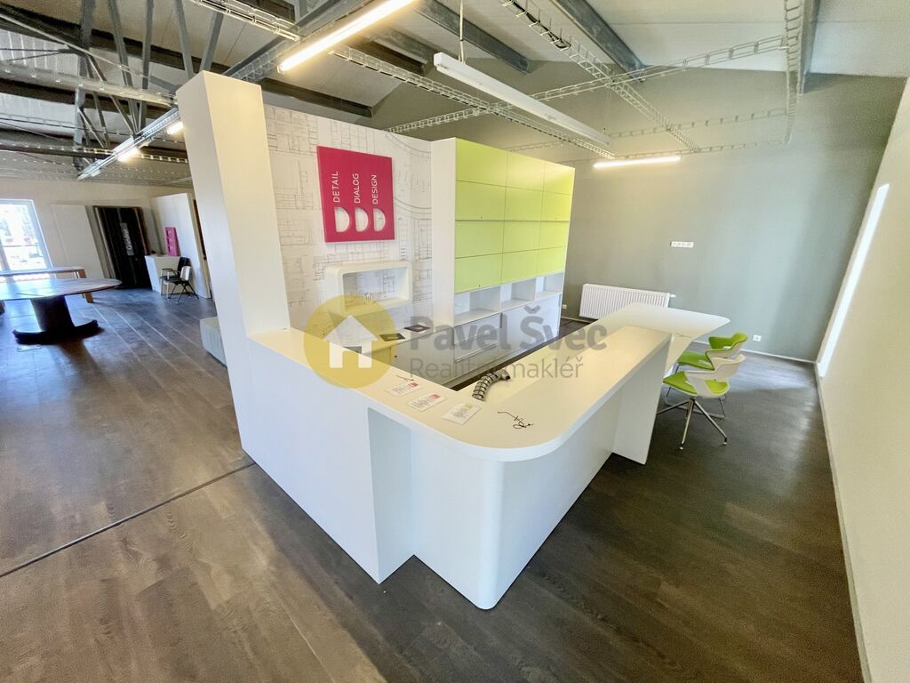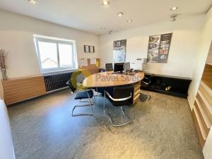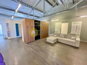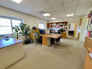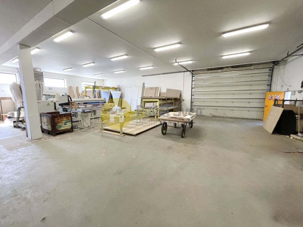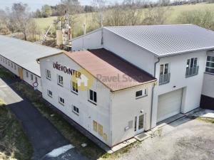 Hlavní budova a navazující dílna: kanceláře, recepce s prezentací formou otevřeného prostoru showroomu (cca 207 m2), sociální zázemí vč. šaten, sprch, WC pro zaměstnance. V přízemí lze vjíždět dodávkami případně vysokozdvižnými vozíky a nakládat/skládat. Tento prostor již patří k výrobě a dál pokračuje.