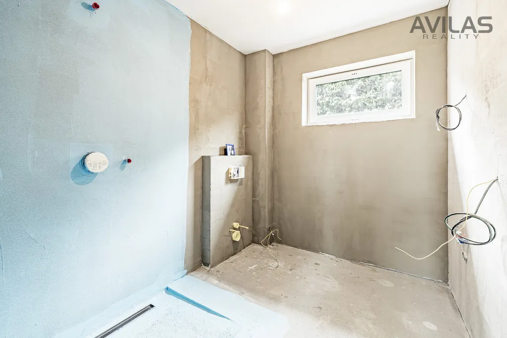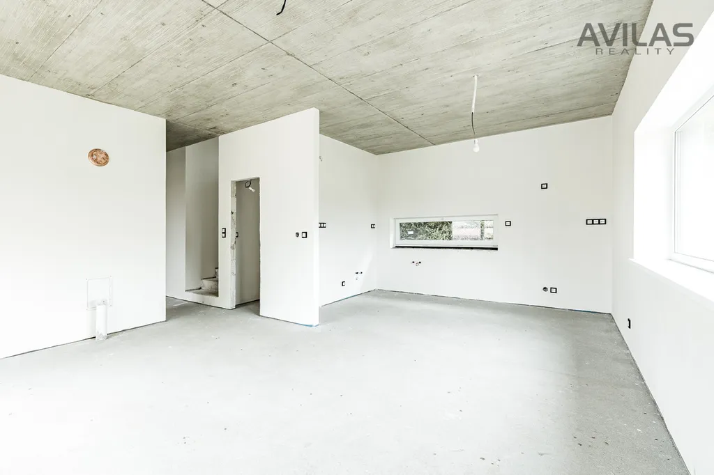 Přízemí: obývací pokoj s kuchyňským koutem 29,24 m2, ložnice 11,30 m2, šatna 5,48 m2, koupelna 5,94 m2, technická místnost 4,86 m2, sklad (pod schody) 4,30 m2, chodba 6,77 m2, zádveří 5,26 m2.