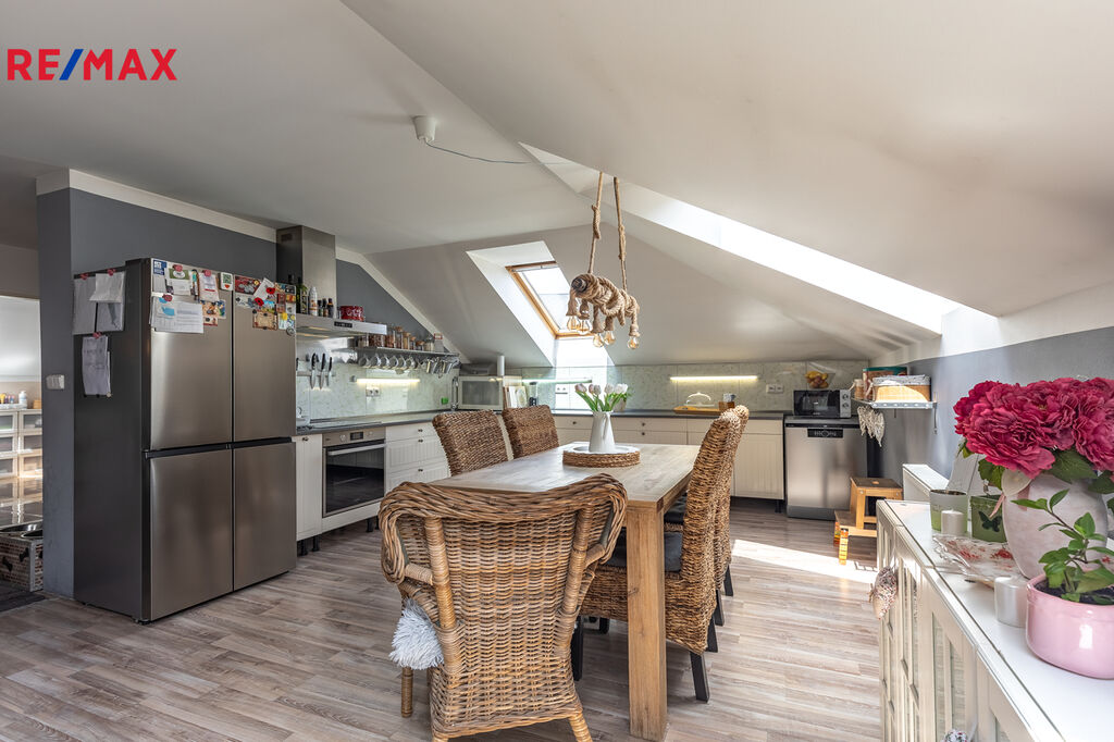 nabízíme Vám k prodeji prostorný patrový rodinný dům se zahradou ve velice klidné a minimálně frekventované části obce Lom, ve slepé ulici Komenského č. p. 401/6. Dům prošel kompletní vnitřní rekonstrukcí a byl od počátku zamýšlen pro bydlení větší rodiny, proto každé podlaží nabízí plnohodnotnou bytovou jednotku vybavenou koupelnou, kuchyní a dalšími pokoji. Samozřejmě je tento dům možné obývat jako celek, přičemž je k dispozici vícero pokojů, některé samostatné, další průchozí, jak je patrné na přiloženém půdorysu, kde jsou také upřesněny rozměry celého domu. Každé podlaží nabízí zhruba 135 m2 užitné plochy, tedy celkem spolu se sklepem 300 m2. Ve sklepě je krom úložného prostoru také umístěn automatický kombinovaný kotel, který lze také využívat pro ohřev vody namísto bojleru. Majitelé si tuto variantu vytápění velice chválí, náročnost s obsluhou minimální a roční nákladovost v podobě uhlí (lze i pelety nebo dřevo) se pohybuje do 60 m3 dle délky zimy. V přepočtu na peníze zhruba 3 tis měsíčně. Stávající hodnota PENB je ve třída „F“, která je zapříčiněna zejména chybějícím zateplením obvodových stěn. Při realizaci souboru opatření lze docílit hodnoty "B".