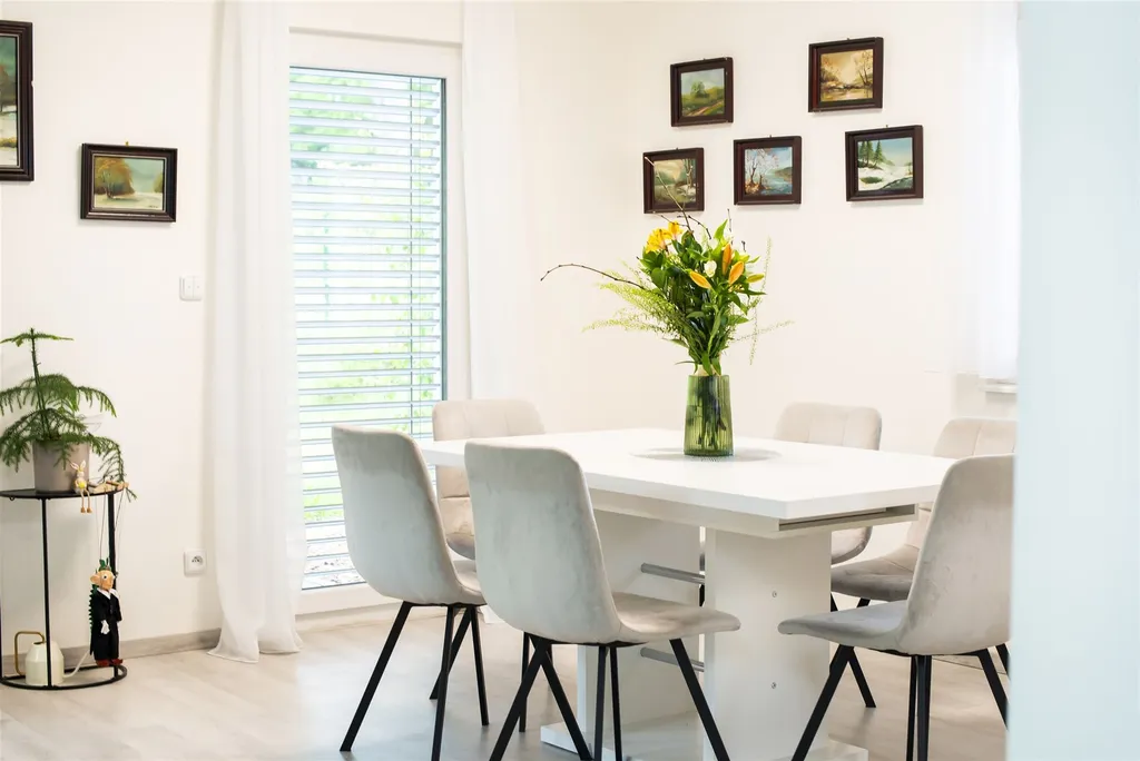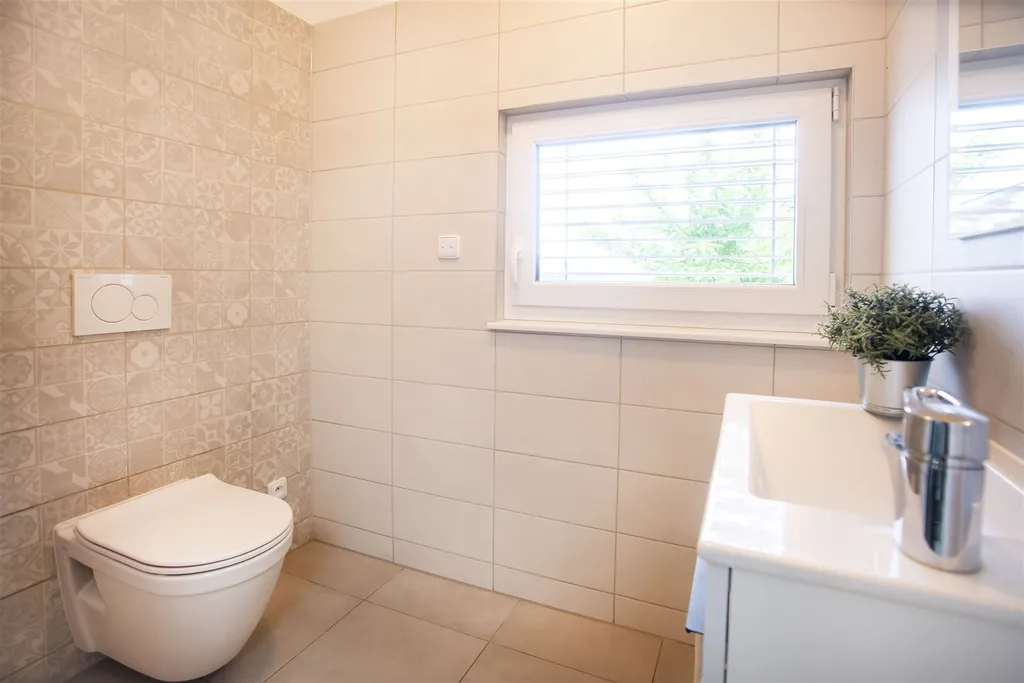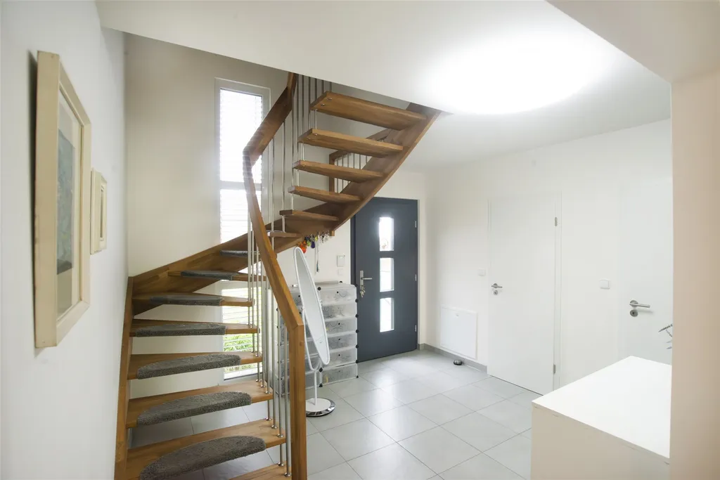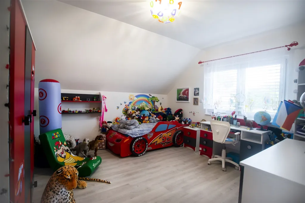 Tento rodinný dům velmi kvalitního provedení je dispozičně řešen jako 4+KK o celkové užitné ploše 111 m2. V přízemí domu se nachází prosvětlená obývací část prakticky propojená s kuchyňským a jídelním koutem se vstupem na zastřešenou terasu a udržovanou zahradu. Dále zde nalezneme technickou místnost a samostatnou toaletu. Dubové schodiště nás zavede do 1. patra domu, kde se nachází samostatné tři pokoje a prostorná koupelna s toaletou. Další praktické úložné prostory nalezneme v půdním prostoru.