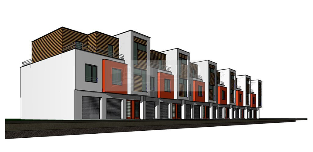 Pozemek je vhodný pro výstavbu samostatných rodinných domů, řadových domů nebo domů se dvěma bytovými jednotkami – každá s vlastní zahradou a parkováním přímo u domu.