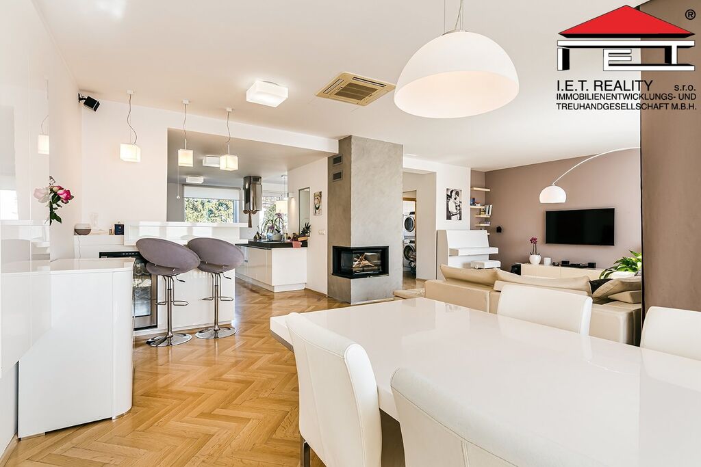 Prodej luxusní rezidence, nacházející se v jedné z nejvyhledávanějších brněnských lokalit. Jedná se o čtyřpodlažní budovu s bazénem, saunou, zahradou a vinným sklepem. V 1.NP se nachází vstupní hala se schodištěm a socálním zařízením, dvě samostatné místnosti využívané v současné době jako ordinace terapeuta, technické zázemí domu, průjezdná garáž pro dva vozy a vstup do venkovního traktu. Ve 2.NP je situovaná moderní kuchyně s jídelnou a vstupem na terasu s posezením, obývací část s krbem, pokoj pro hosty se socálním zázemím a prádelna. Ve 3.NP najdete 3 samostatné pokoje využívané jako ložnice, dětský pokoj a pracovna s posilovnou a dále velkoryse prostorná koupelna s venkovní terasou. V zahradním atriu je pak vybudované zpevněné zelené posezení, studna a stavba bazénu se saunou, vlastním sociálním zázemím a místnost pro bazénovou technologii. Nemovitost je ve vynikajícím, stavebně technickém stavu, bez nutnosti dalších investic, okamžitě obyvatelná. Její pohodlí a klidnou atmosféru můžete částečně vychutnat již při první, informační prohlídce, ke které Vás srdečně spolu s majiteli zveme.