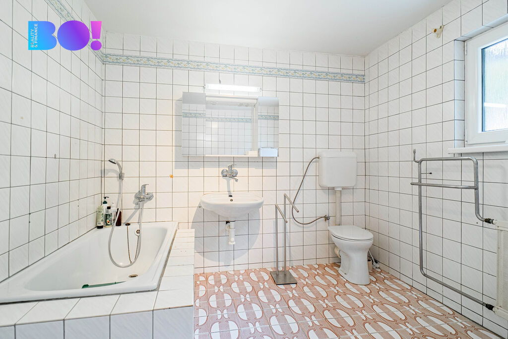 - Dům je napojen na veřejný vodovod, kanalizaci a elektřinu, k dispozici je také vlastní studna