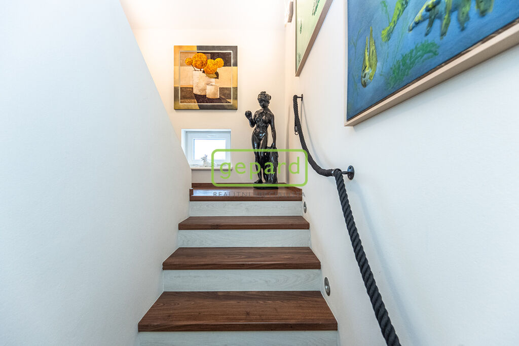Třípodlažní dům o dispozici 3+1 byl postaven v roce 2011. Celková plocha domu činí 231 m2 včetně garáže (25 m2) a terasy (31 m2). Celková plocha pozemku je 4.306 m2, plocha zahrady je 4.100 m2.