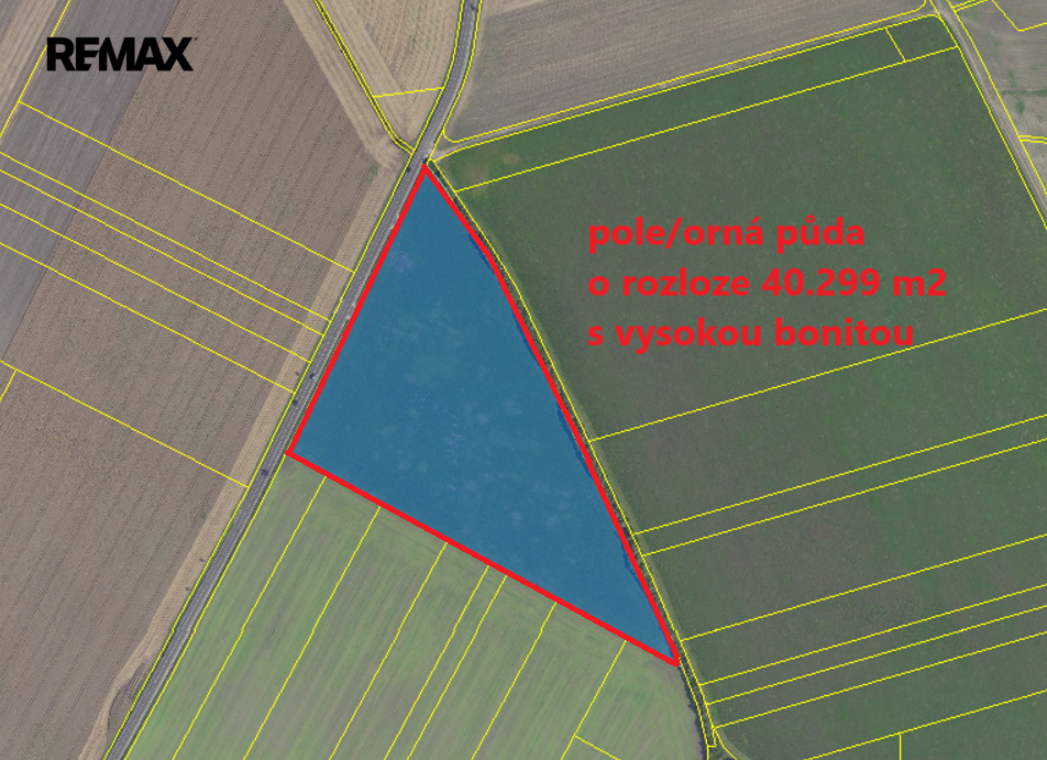 Jestliže hledáte výhodnou investici do zemědělství, využijte této jedinečné příležitosti k pořízení vysoce bonitní orné půdy s ideálními předpoklady pro efektivní zemědělské využití. Pro více informací kontaktujte makléře, v RE/MAX Prestige jsme vždy připraveni vyjít vám vstříc! Prodávající si vyhrazuje právo vybrat kupujícího na základě jím zvolených kritérií.