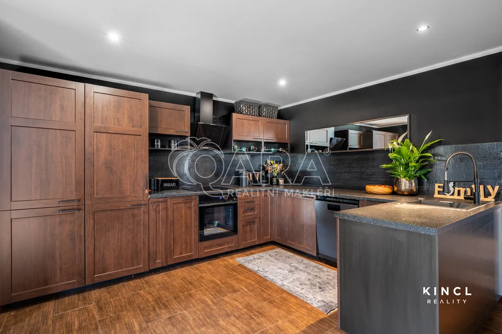 Hlavní dům s dispozicí 4+kk (156 m² užitné plochy + 18 m² terasa) nabídne moderní a světlé bydlení s velkými okny orientovanými na východ, které propouštějí spoustu denního světla a nabízejí nádherný výhled na vaši soukromou zahradu. Komfort doplňují dvě koupelny a praktické samostatné WC pro hosty hned u vstupu. Oceníte i bezbariérový přístup do spodního podlaží, které je v jedné rovině s chodníkem.