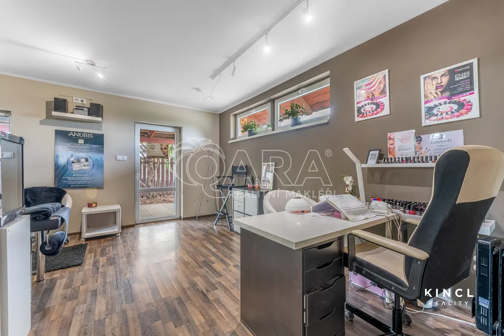 Druhý dům (47 m² užitné plochy + 51 m² garáž s terasou) je splněným snem o flexibilitě! Aktuálně slouží jako kosmetický salón a volnočasová místnost, ale jeho potenciál je obrovský: můžete zde mít své vlastní wellness, soukromé fitness, kancelář, nebo samostatné bydlení pro rodinu nebo návštěvy.