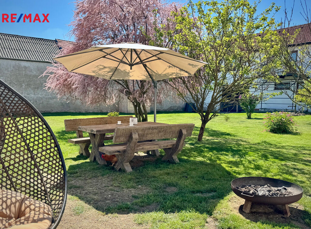 Uzavřený dvůr cca 1 000 m², prostorná stodola vhodná pro svatby/akce