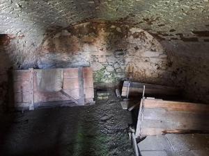 Na dvoře na obytnou část navazují původní klenuté stáje, nad které velký půdní prostor zasahuje.
