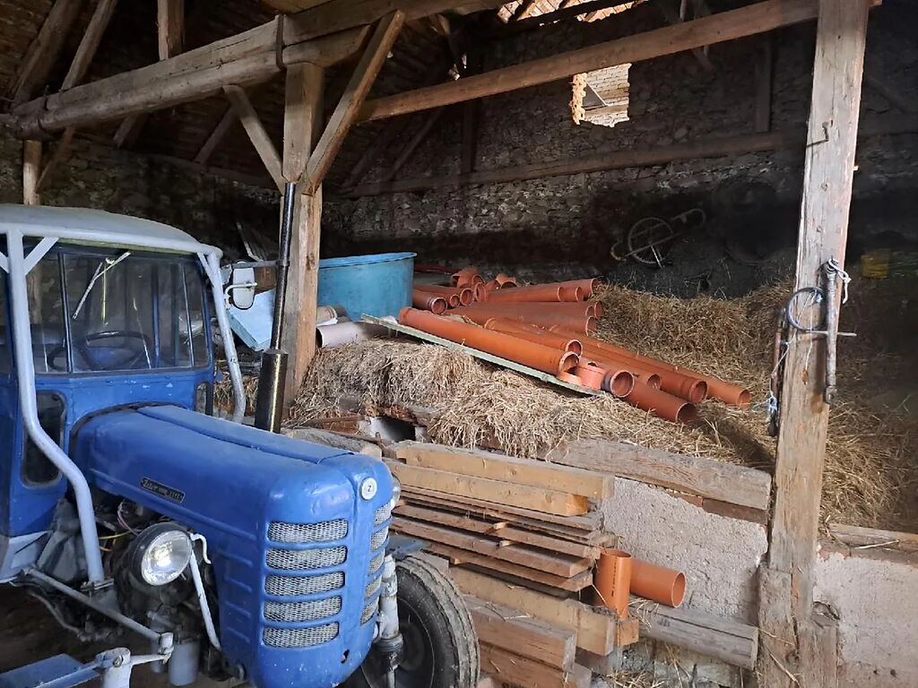 Dále jsou na dvoře dílna, garáž, dřevník a vstup do rozlehlé stodoly včetně její sklepní části.