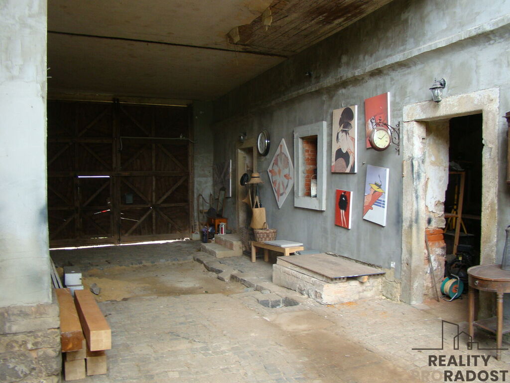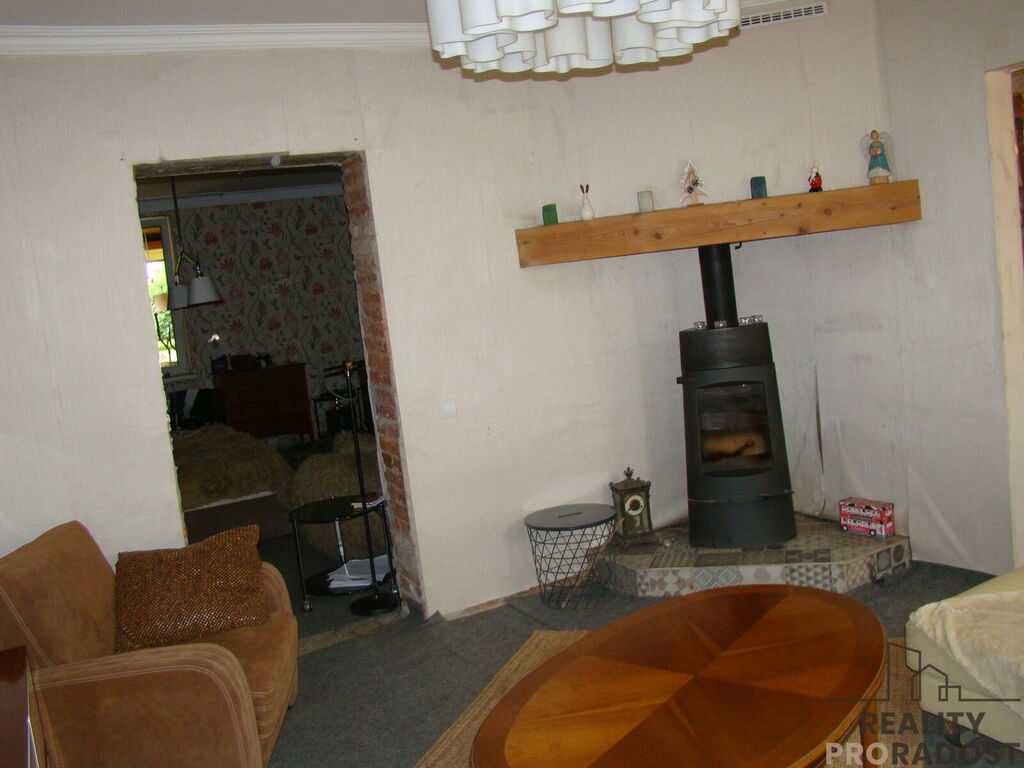 Vytápění domu je řešeno plynovým topením a krbovými kamny. Druhá polovina domu slouží jako garáže a dílny a je zde možné realizovat rekonstrukci, která se dělá ve stodolách, možnost velkého prostoru.