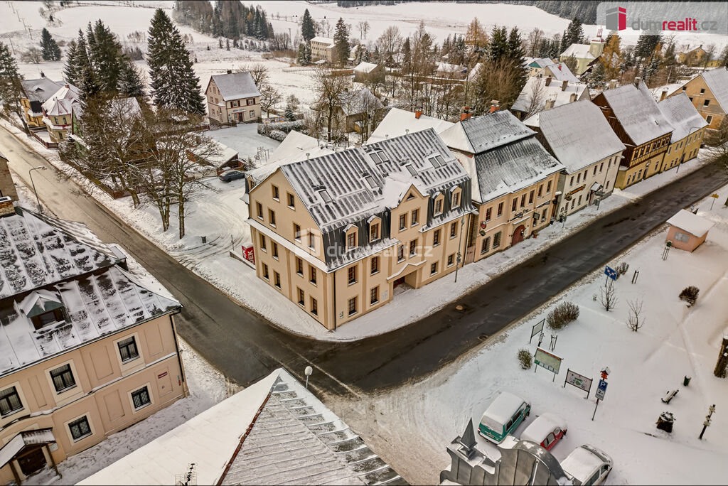 Dumrealit.cz Vám zprostředkuje prodej apartmánů na náměstí Sv. Vavřince v Horní Blatné, které se nachází v blízkosti několika lyžařských areálů jako je Plešivec, Potůčky nebo Klínovec. Apartmán číslo 10. se nachází v druhém patře, je o velikosti 60,5 m² s výhledem na náměstí a kostel Sv.Vavřince. Dispozice bytu 2+KK. Všechny apartmány jsou vybaveny sanitární keramikou v koupelnách, sprchovým koutem Walk-in, podlahovou krytinou a to v kombinaci velkoformátové dlažby a plovoucí podlahy v dekoru dřeva, obložkami, interiérovými a vstupními dveřmi. Součástí jsou také nádherné společné prostory a to včetně sklepního prostoru s možností posezení. Vytápění apartmánů je elektrické s dálkovým ovládáním s připojením na Wi-Fi. V apartmánovém domě se nachází 12 jednotek od 1+KK až po 3+KK různých podlahových výměr. Ke každému apartmánu patří jedno soukromé parkovací místo hned u domu a jedna sklepní kóje, vše je již započítáno v uvedené ceně. Několik apartmánů je již prodáno. Izolant obvodových stěn 16-18cm polystyrenové dílce a 28cm minerální vlna v podkrovní části domu. V uvedené ceně je započítána kuchyňská linka se spotřebiči. Nemovitost se nachází přímo na náměstí s výhledem na hory a kostel Sv. Vavřince. Koupě apartmánu je ideální také jako investice, kdy jsou Krušné hory celoročně navštěvovány turisty a Horní Blatná patří svým umístěním mezi nejvíce vyhledávané. V blízkosti apartmánu se nachází Blatenský vrch, Vlčí jámy a mnoho turistických a cyklo tras. Nemovitost s možností odpočtu DPH z uvedené kupní ceny. Doporučuji nezávaznou prohlídku objektu s možností vybrat si právě ten VÁŠ apartmán. Ev. číslo: 651559.