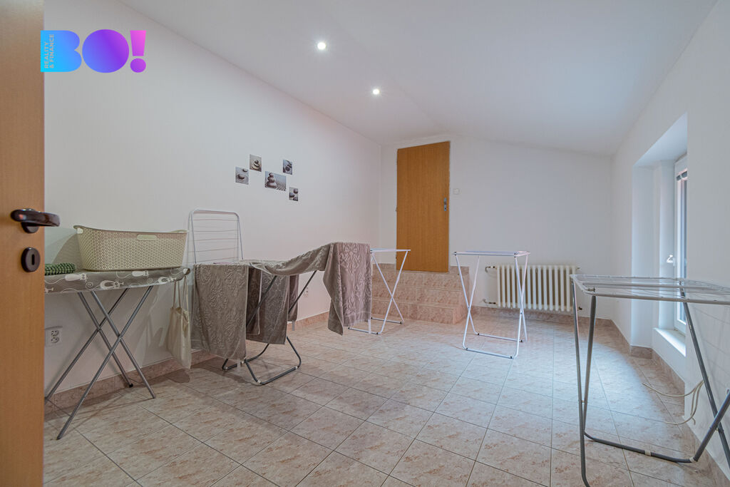 V přízemí najdete prostorný obývací pokoj s přímým vstupem na terasu, kuchyň s jídelnou, pokoj pro hosty či pracovnu a koupelnu se sprchovým koutem. V patře jsou čtyři neprůchozí ložnice a druhá, větší koupelna s vanou. Dům je částečně podsklepen a nabízí i půdní prostor, který lze využít k dalšímu rozšíření nebo jako úložné zázemí.