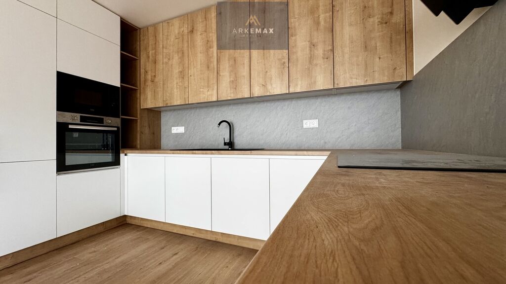 V přízemí se z chodby dostanete do obývacího pokoje spojený s kuchyňskou linkou s výměrou 36 m2. Z chodby se dále dostanete do samostatného pokoje, ze kterého může být pracovna nebo třeba ložnice pro hosty. Koupelna v přízemí je vybavena sprchovým koutem a WC.